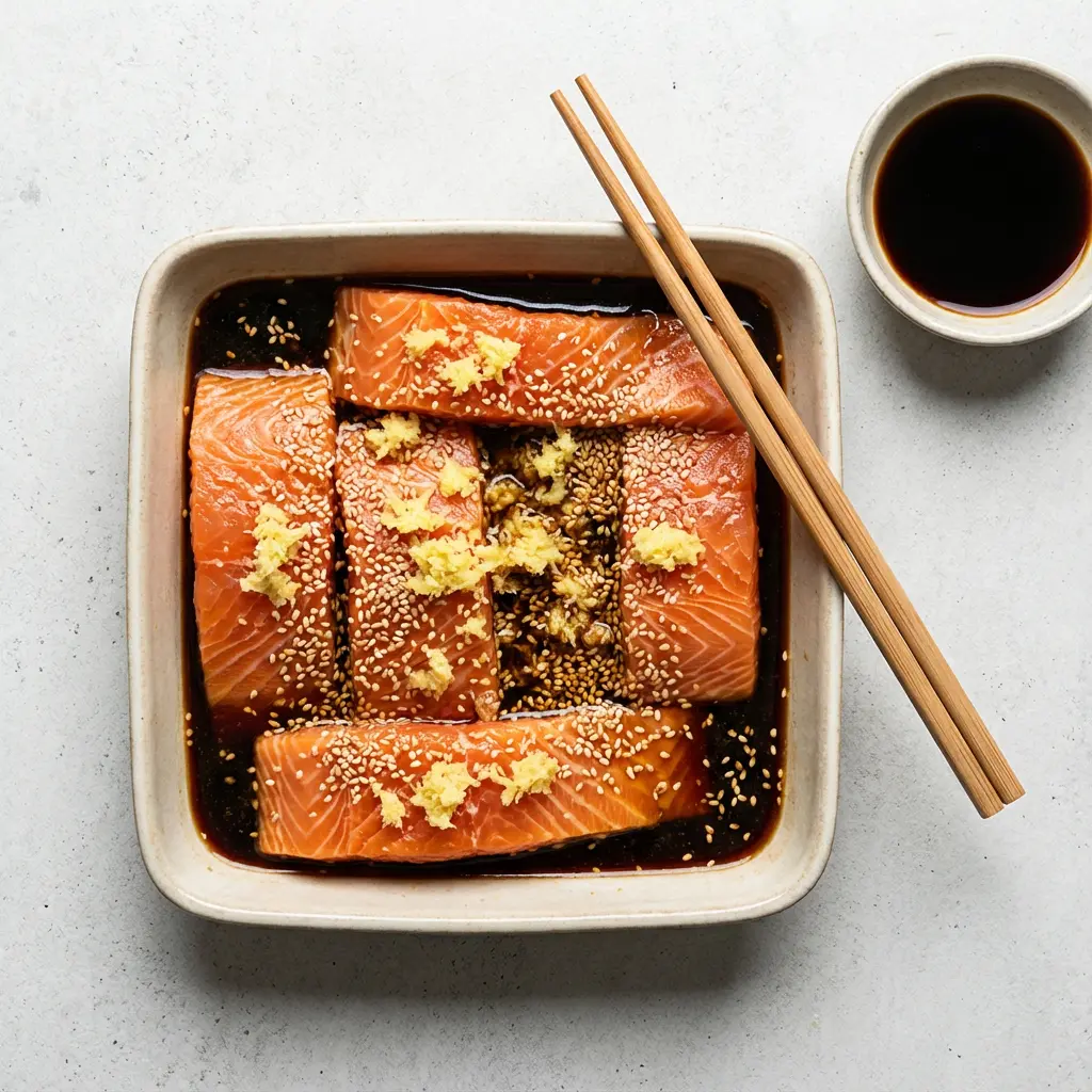 - Soy‑ginger or miso‑glazed salmon