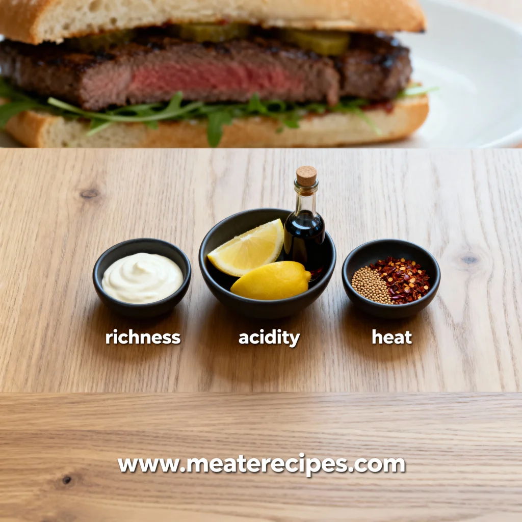 Any good steak sandwich sauce needs to work with the richness of the meat and bread, not fight against it. Steak and toasted rolls are already substantial, so you want a sauce that cuts through that weight rather than turning the whole thing into a heavy, one-note bite. A well-designed sauce usually has three elements in balance: creaminess, acidity, and maybe a touch of heat.