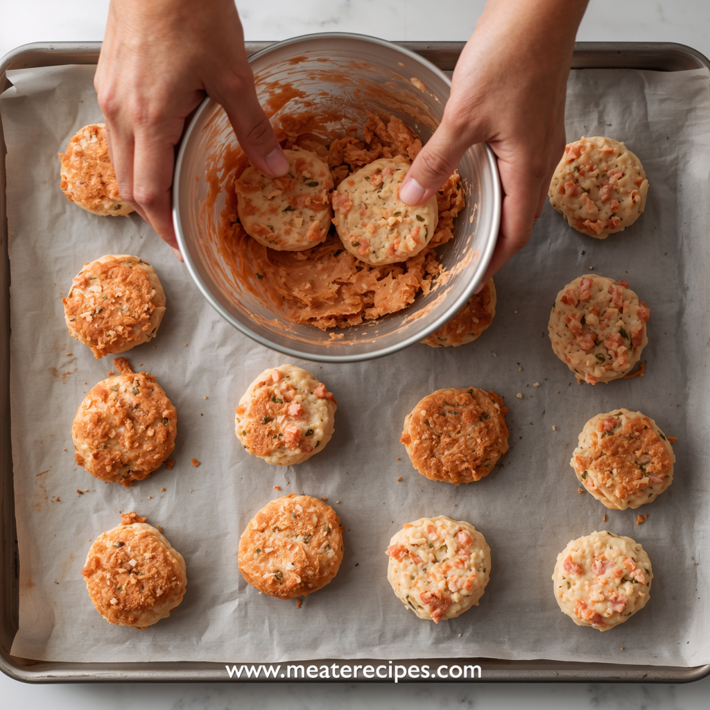Chilling is a small step that makes a big difference in how well your salmon croquettes hold their shape during cooking. Once all the patties are formed, place the tray in the refrigerator for at least 15–30 minutes. This rest time allows the breadcrumbs to hydrate and the mixture to firm up.